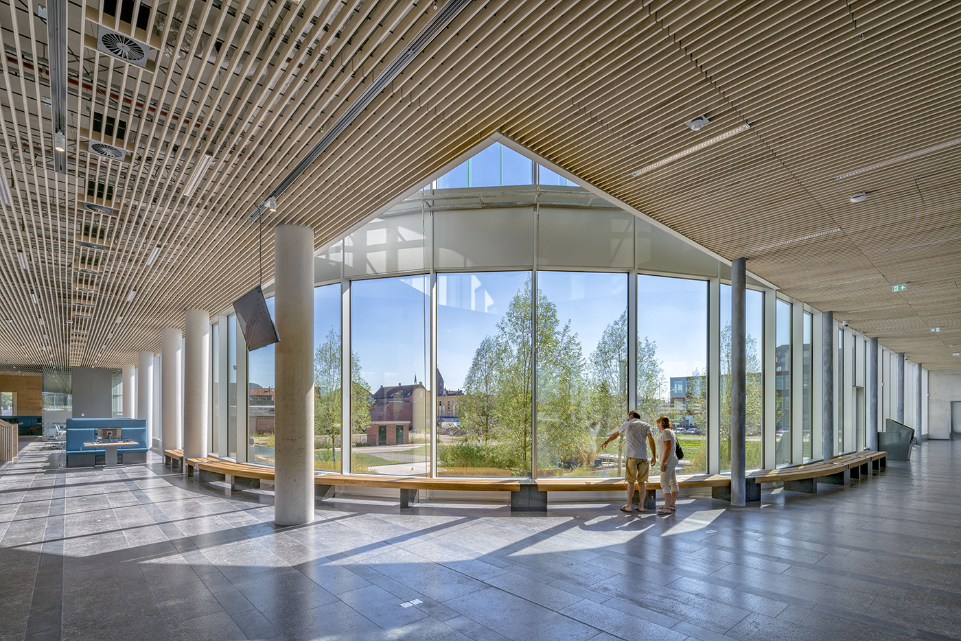 Die gesundheitlichen und sozialen Aspekt des Gebäudes unterstreicht auch Hans Goverde: Aufzüge seien versteckt und der Blick zu anderen Etagen hin geöffnet worden. Mehr Bewegung und Kommunikation sind die Folge. Die Voraussetzungen, unter denen sein Team in Venlo arbeiten konnte, suchen nach wie vor ihresgleichen, so Goverde: „Die Stadt hat sehr früh zirkuläre Prinzipien übernommen – auch in anderen Bereichen wie Bildung und Beschaffung. Das machte sie zu einem fantastischen Auftraggeber und ein Stück weit exotisch im Vergleich zu anderen Orten“, berichtet er.